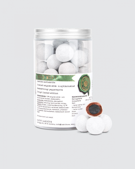 Pitkään haudutettu salmiakki, pehmeän belgialaisen suklaan peitossa ja viimeistelty aidon intialaisen piparmintun raikkaudella.
